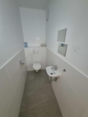 Das Badezimmer mit WC ist stilvoll gestaltet und bietet eine angenehme Atmosphäre.